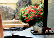 なめらかな泉質はお肌にやさしく、女性のお客様に大好評。夏は夕涼みしながらさっぱりと、冬は雪見風呂でほっこりと。部屋付きの露天風呂だから気兼ねなくお好みの温度のお湯でご入浴いただけます。積雪時にはお部屋の露天風呂も真っ白に雪化粧します。